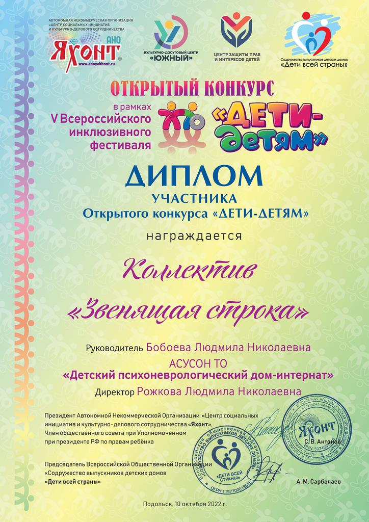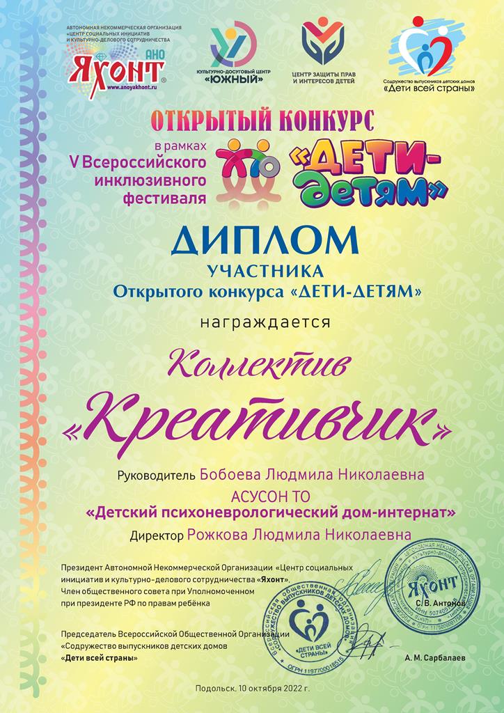 В сентябре месяце наши воспитанники приняли участие в первом онлайн-туре V Всероссийского инклюзивного фестиваля «Дети-детям», который проходил в г. Подольск.