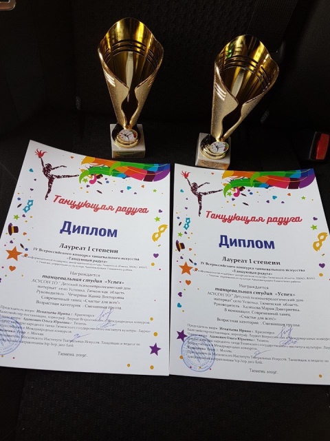11 мая воспитанники Детского психоневрологического дома-интерната приняли участие в IV Всероссийском конкурсе танцевального искусства «Танцующая радуга». На этот раз танцевальная студия "Успех" выставила сразу два танца в номинации «Счастье для всех» - уже полюбившийся зрителям танец «Сыщики» и новый танец «Жить здорово». Оба танца принесли не только дипломы лауреатов 1 степени, но и статуэтки победителей. |