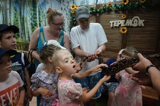 16 июня воспитанники Детского психоневрологического дома-интерната посетили контактный зоопарк “Теремок» в торговом центре "Колумб". Ребята узнали много интересного про обитателей аквариумов, погладили и покормили своих новых четвероногих друзей и даже сфотографировались со змеей. Администрация дома-интерната выражает благодарность контактному зоопарку «Теремок» за приглашения и подарки детям. Надеемся на наше дальнейшее сотрудничество. |