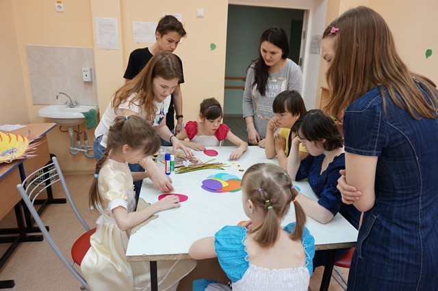 29 апреля Детский психоневрологический дом-интернат посетили гости из МАОУ СОШ № 63. Ученики провели множество мастер классов с воспитанниками дома-интерната, посвященных прошедшей Пасхе. Они украшали бумажные яйца, делали петухов из бумаги, подставки для карандашей в форме зайцев, раскрашивали глиняные поделки и даже сделали Пасхальную Курицу, для которой из бумаги были вырезаны ладошки всех участников мастер-класса. Детский дом-интернат, благодарит администрацию МАОУ СОШ № 63 и всех участников мастер-класса за благотворительную помощь, и надеется на дальнейшее сотрудничество.