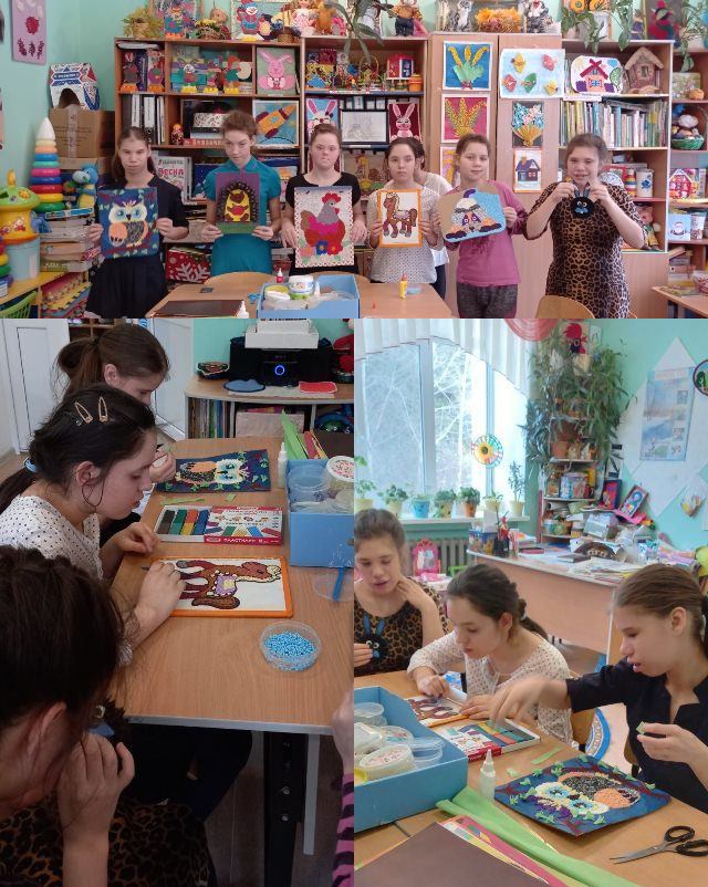 Развивающие мероприятия по теме «Путешествие в мир животных» прошли во всех группах воспитанников. В течение всего месяца ребята знакомились с разновидностями животных, со средой их обитания, с особенностями поведения. Для закрепления знаний проведено итоговое занятие по моделированию из различных видов материалов. В процессе занятия ребятам необходимо было создать декоративное панно с изображением животных. Для его изготовления использовалась цветная и гофрированная бумага, нитки, пластилин.
