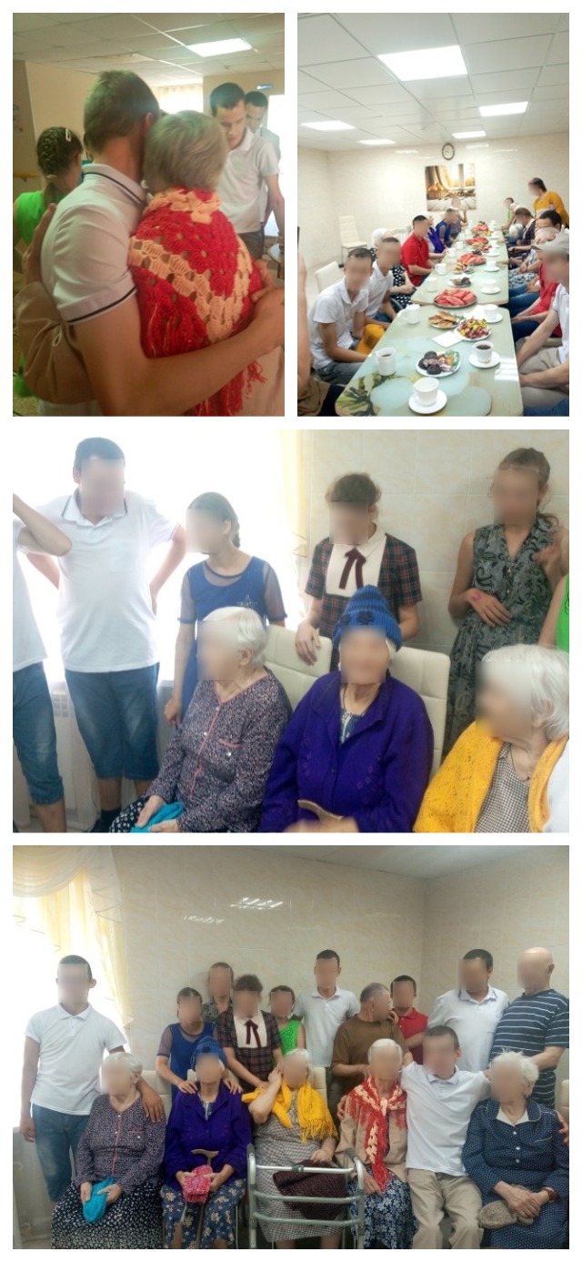 Сложив наши творения в сундучок, мы отправились их вручать в отделение временного проживания пожилых людей с. Успенка, где нас уже ждали. Для нас был организован сладкий стол. Настоящим лакомством для детей стал сочный и сладки