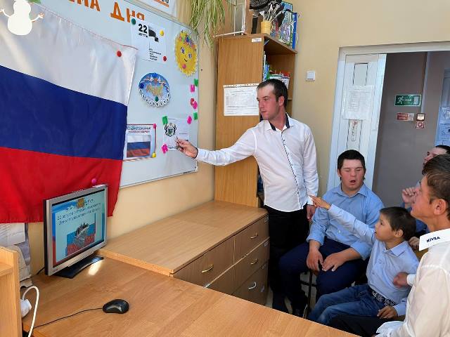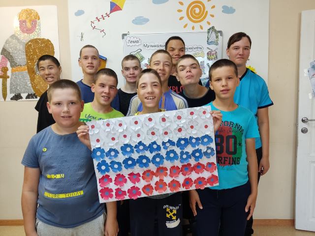 Патриотический праздник – День Российского Государственного флага – сегодня стал поистине светлым для воспитанников нашего дома-интерната. Во всех группах был проведен воспитательный час «Это флаг моей России», на котором ребята услышали интересный рассказ об истории нашего российского флага, начиная со средних веков, когда роль флага исполняла чудотворная икона. Путешествуя сквозь столетия, дети узнали историю Андреевского флага, черно-желто-белого и бело-сине-красного триколоров. Особое внимание было обращено на Знамя Победы – официальный символ победы советского народа в Великой Отечественной войне.