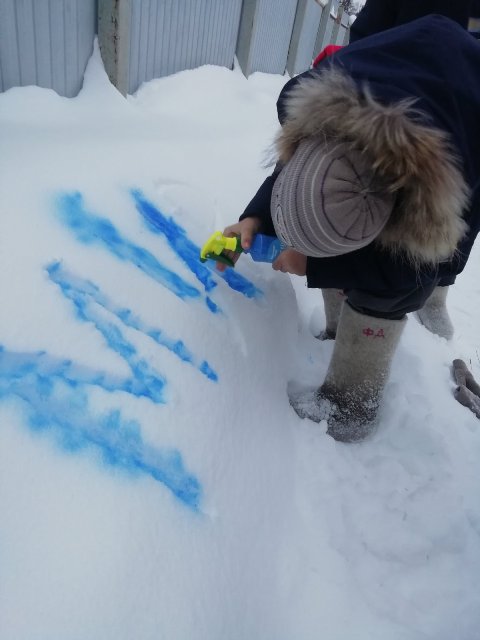 В зимнее время даже на улице можно заняться творчеством с ребятней. Например, рисовать на снегу.