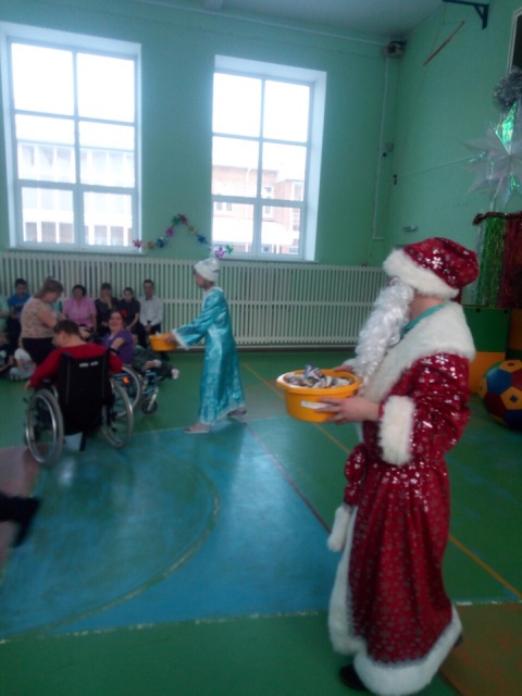 2 января в Детском психоневрологическом доме-интернате состоялось первое в этом году спортивно-развлекательное мероприятие - «Веселый хоровод». Дед Мороз и Снегурочка в очередной раз порадовали ребят не только сладкими подарками, но и зажигательными танцами, любимыми песнями и веселыми эстафетами. А такие конкурсы как «Конфетный дождь», «Игрушки для елки» и «Новогодний костюм» усилили атмосферу праздника. |