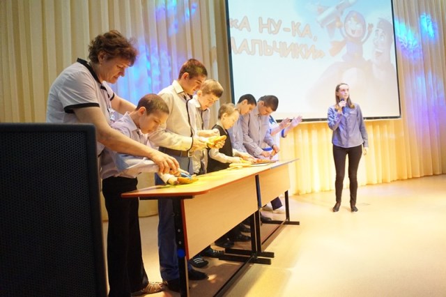 2 марта в Детском психоневрологическом доме-интернате состоялась конкурсно-игровая программа «А ну-ка, мальчики!». Все представители сильного пола, из числа воспитанников учреждения, приняли участие в ряде конкурсов, где среди прочего, показали свои умения в области хозяйственно-бытовой деятельности: они чистили овощи, шнуровали обувь и даже делали прически девочкам. |