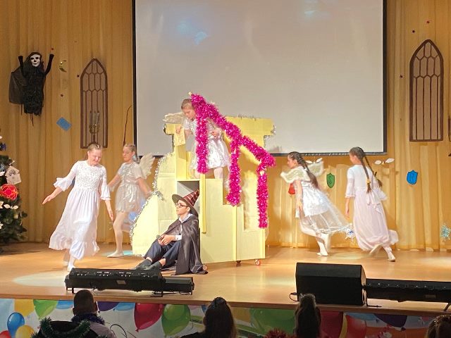 В ходе подготовки театрального представления «Новогодние приключения Гарри Поттера и его друзей» дети совместно с сотрудниками готовили декорации, костюмы, просматривали фильмы про Гарри Поттера, и, конечно, принимали участие в репетициях.