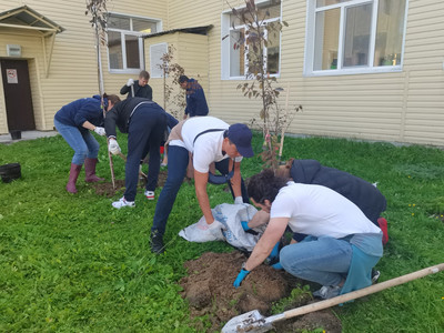 На территории учреждения вместе с сотрудниками кампании воспитанники нашего дома высадили 25 яблонь. Традиция сажать яблони, как символ семьи, появилась несколько лет назад. Теперь и в нашей большой семье очень скоро зацветет настоящий яблоневый сад.