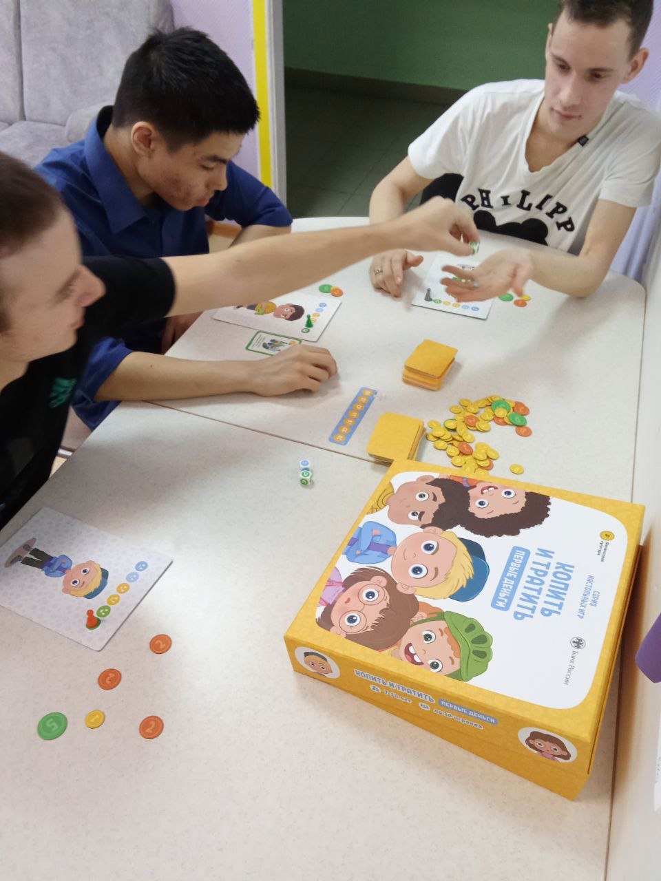 На занятиях обучающего модуля «Финансовая грамотность» ребята получают не только теоретические знания о финансовых инструментах, но и с помощью игровых ситуаций учатся ими пользоваться. На первом этапе с помощью настольных игр «Копить и тратить» ребята знакомятся с деньгами (жетонами), как их можно заработать и потратить. На следующем этапе дети учатся пользоваться бумажными купюрами и банковскими картами в магазине и банкомате.
