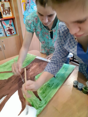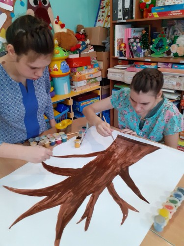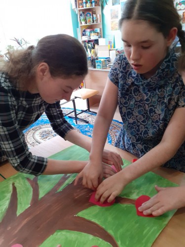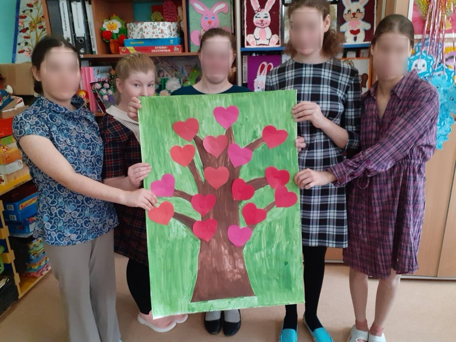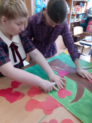 После теплой беседы о доброте, человечности, милосердии, девочки выполнили коллективный творческий коллаж.
