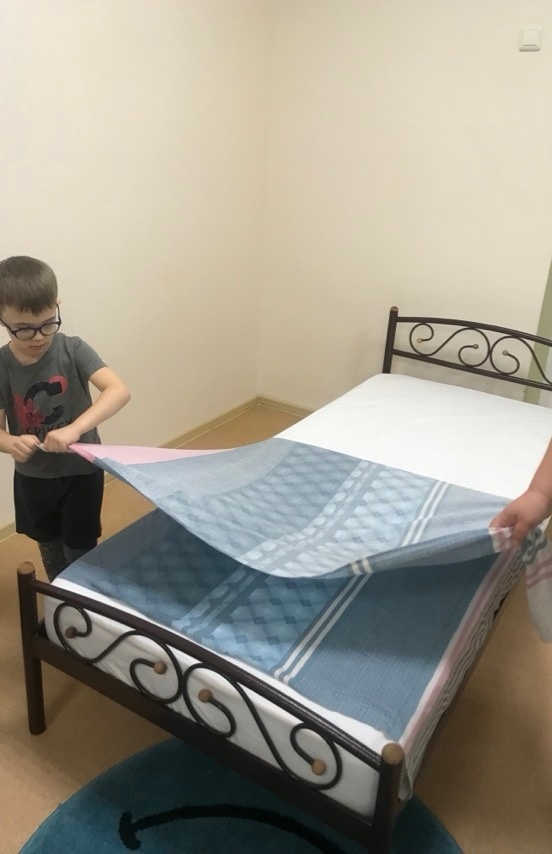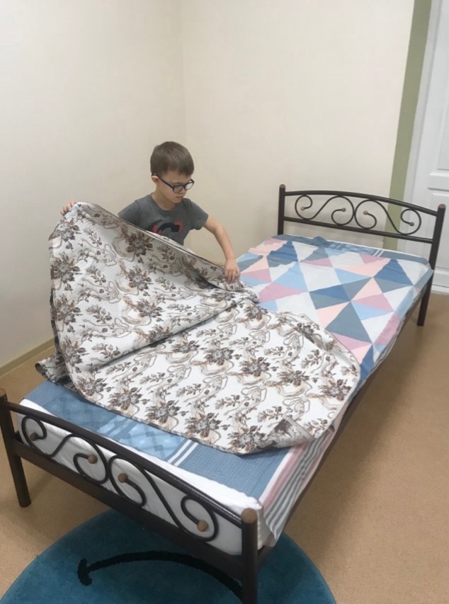 На занятиях по социально-бытовой реабилитации навык заправки постели проходит посредством соблюдения следующей этапности: