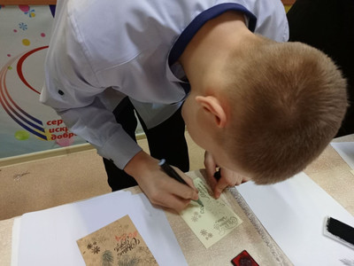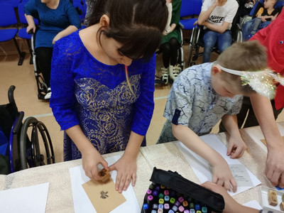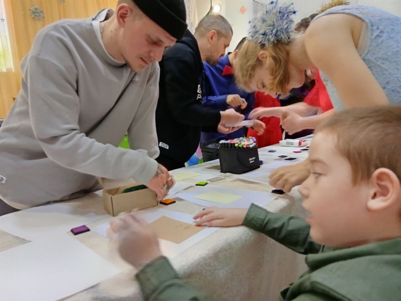 После викторины ребята посетили мастерскую «СкрапШтампинг», где смогли создать интерактивную новогоднюю открытку.