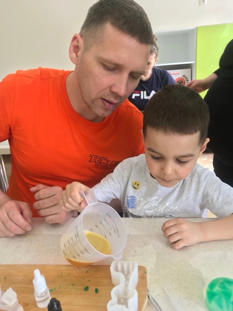 Дети и родители с удовольствием включились в процесс изготовления мыла своими руками: выбирали цвета, запахи и формы, смешивали ингредиенты и заливали массу в формы.