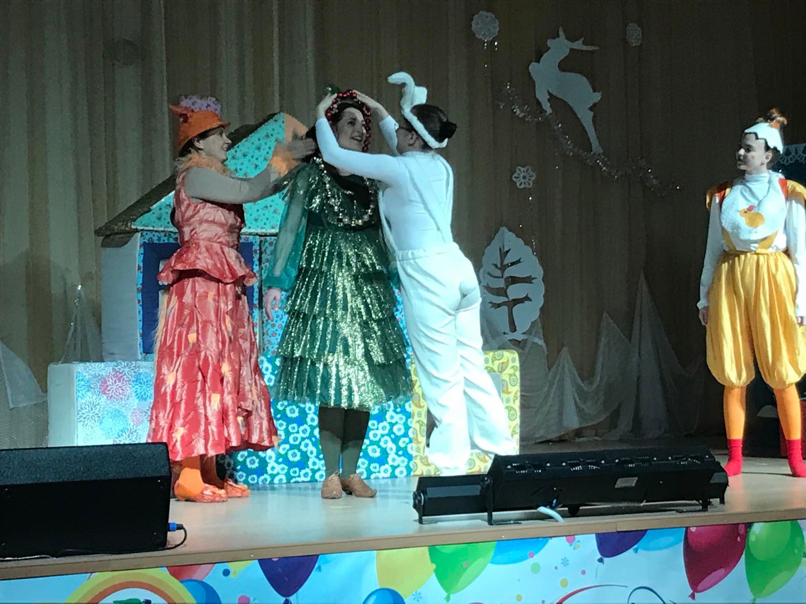 На сказочном представлении «Новогодний теремок» юные зрители встретились не только с героями сказки, но и с Дедом Морозом и Елкой, которую дети смогли превратить в настоящую яркую красавицу!