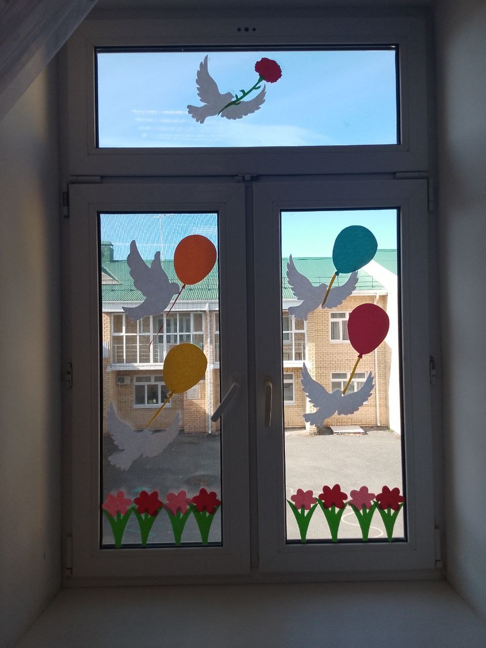 В преддверии этой значимой даты наш Центр принял участие во Всероссийской акции «Окна Победы». Сотрудники нашего Центра, воспитанники и их родители дружно принялись за дело. Одни вырезали шаблоны, другие создавали макеты будущих композиций, третьи украшали окна.