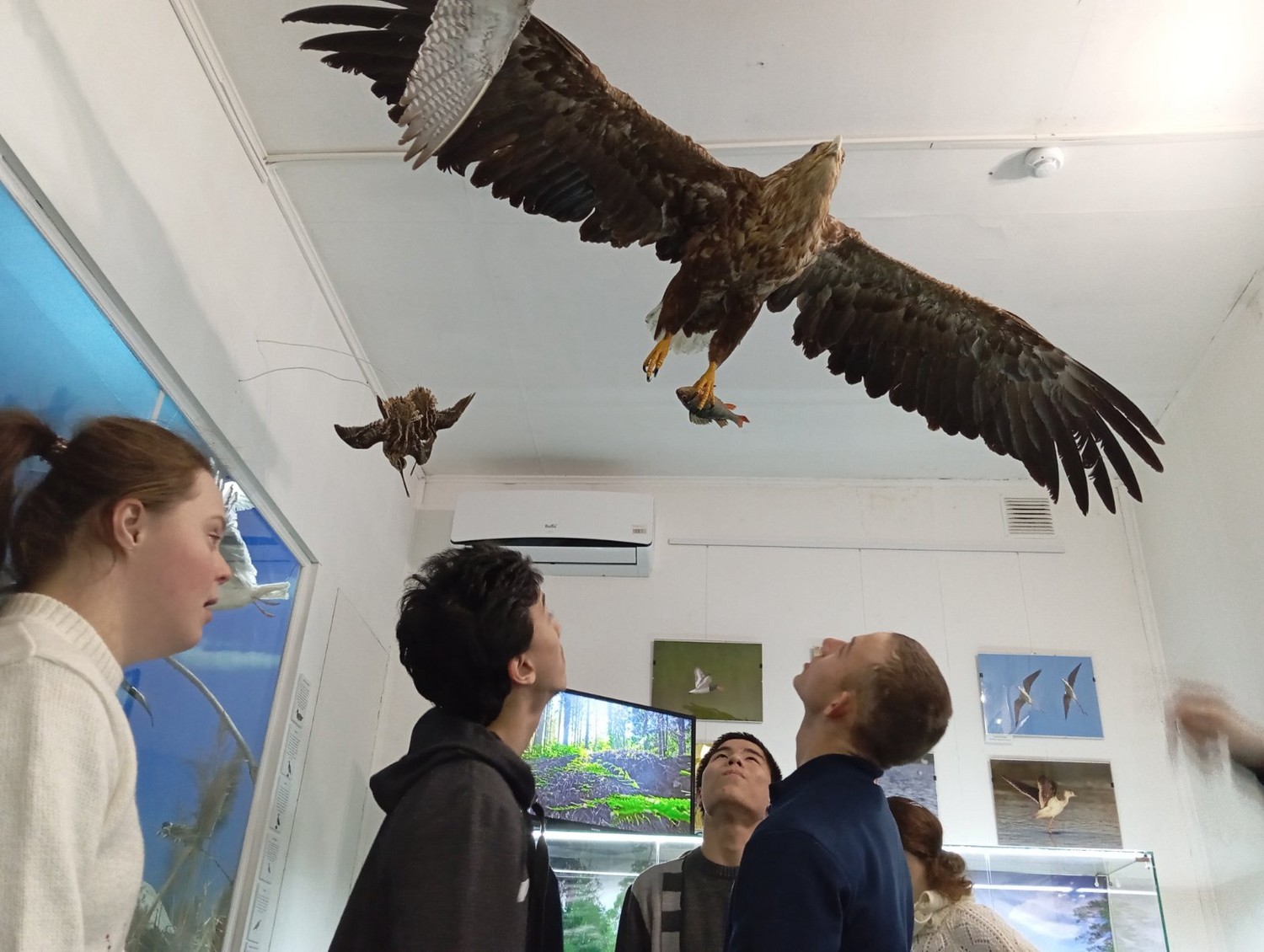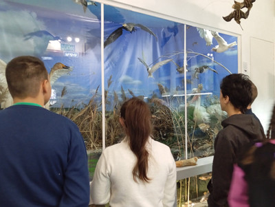 В фойе музея ребята увидели самого большого обитателя Тюменской земли далекого прошлого – мамонта. В следующих залах юных экскурсантов ждали уже современные представители фауны в панораме местной природы. Экспозиция «Обитатели водоемов» позволила в деталях рассмотреть животных не только на суше, но и под водой.