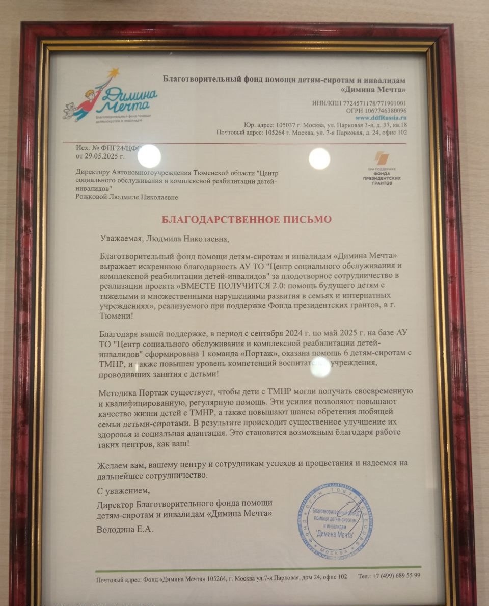 ⎯АУ ТО «Центр социального обслуживания и комплексной реабилитации детей-инвалидов”, г. Тюмень;