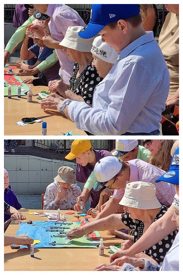 Ребята объединили бабушек и дедушек одним общим делом – созданием совместного панно.
