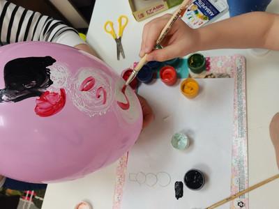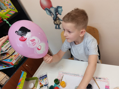А мы освоили необычный способ рисования – рисование на воздушных шарах.