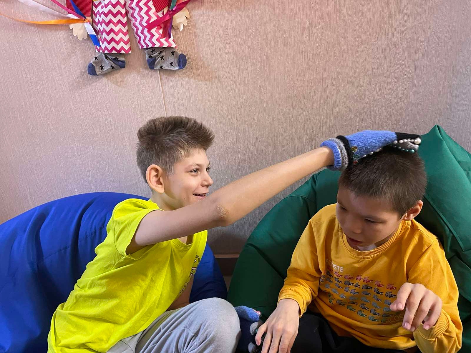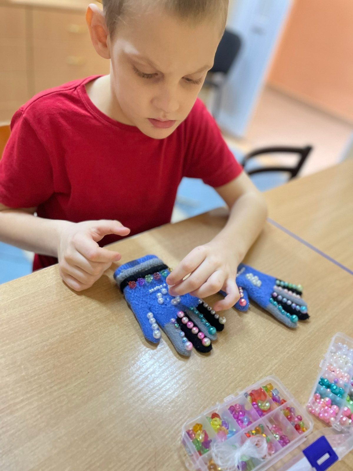 Так, на одном из занятий по предметно-практической деятельности, ребята изготовили своими руками массажные тренажеры для самомассажа «Рукавички здоровья». Для изготовления понадобились всего лишь перчатки (варежки), бусы и пуговицы. Надеваем наш «массажер» на руку и приступаем! Такими «рукавичками» можно массажировать ручки, ножки, голову, спину, живот.