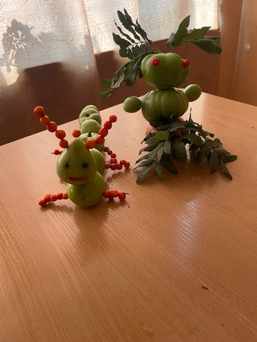Все лето ребята ухаживали за садом и огородом, в которых выращивали самые различные овощи и зелень. Когда плоды созрели, дети решили организовать кулинарный квест и сделать из урожая «съедобные игрушки». Ребята продемонстрировали свои таланты и воплотили в жизнь самые невероятные фантазии не только в приготовлении различных блюд, но и игрушек, и сумели их ярко и с юмором презентовать.