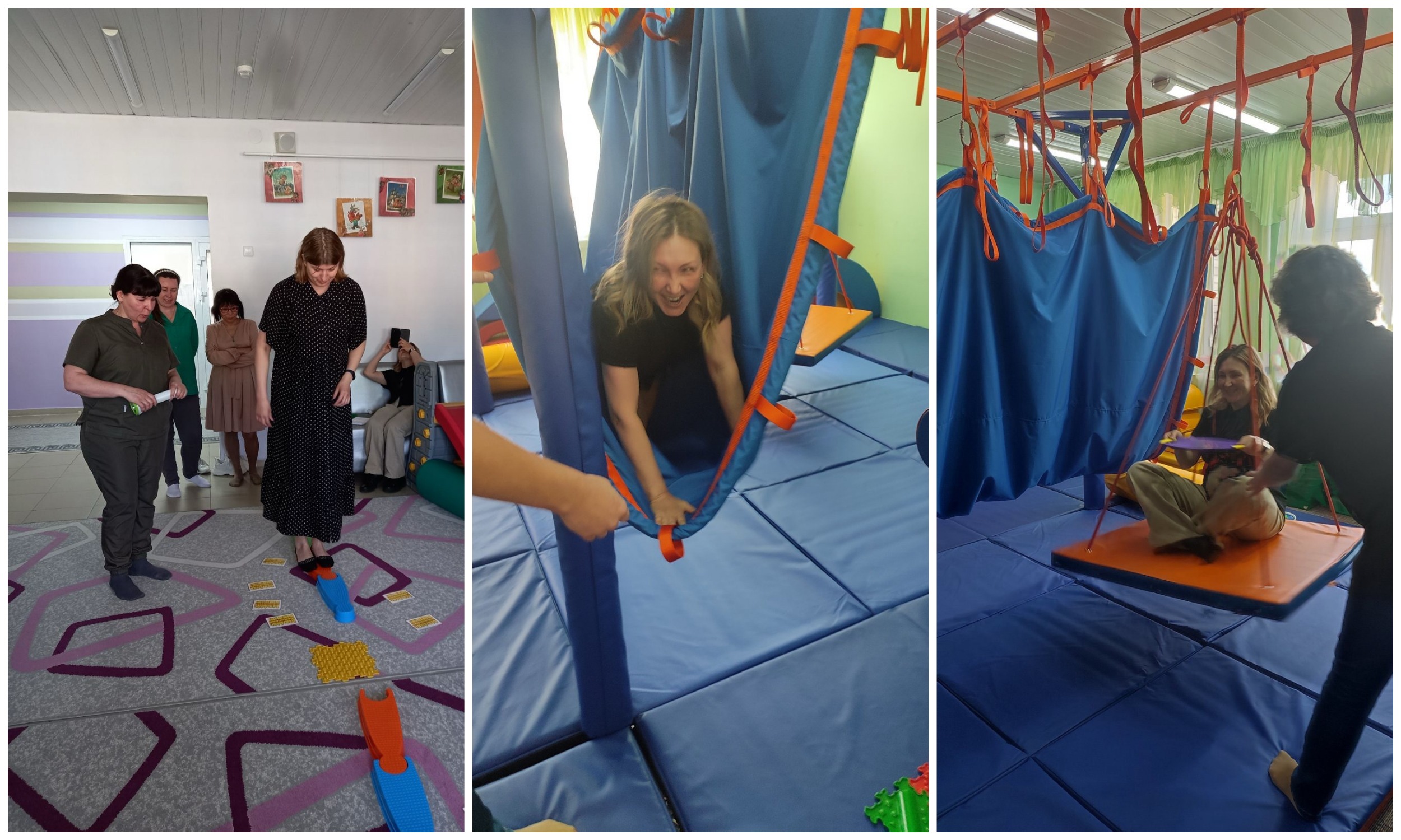 Педагоги-психологи побывали в темной сенсорной комнате, познакомились с новыми формами работы с интерактивным световым оборудованием. В сенсорно-динамическом зале «Дом Совы» самые смелые прошли непростую тропу препятствий, ощутив на себе все возможности гравитации на подвесном оборудовании. Помимо этого, участникам стажировочной площадки была представлена программа по созданию индивидуальных развивающих игр для интерактивного стола и новое оборудование для коррекции детско-родительских отношений «Волшебное окно».