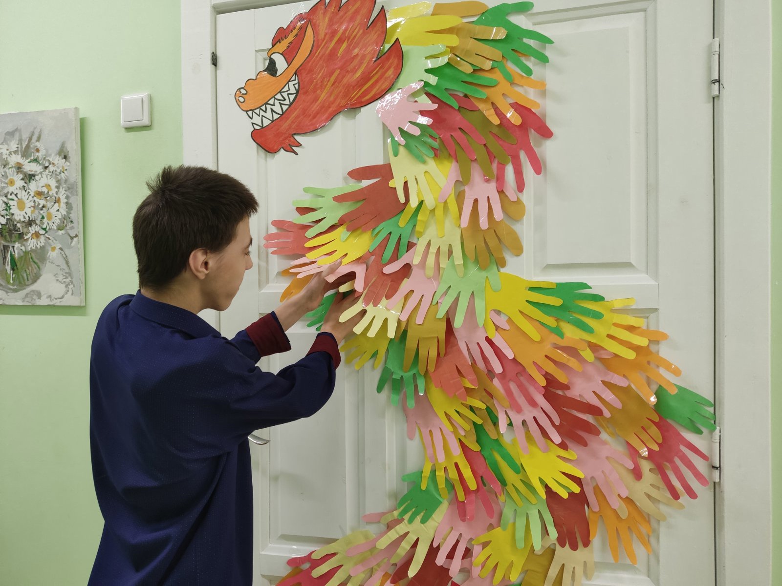 Приятная предновогодняя суета царит в группе мальчиков. Ребята, в ожидании чуда, праздника и волшебства, старательно готовятся к встрече Новогодних праздников. Множество талантов раскрывается, будто, по мановению волшебной палочки. Ребята собственноручно мастерят самого главного символа года - Зелёного Деревянного Дракона. Гостей нашей группы встретят и вязаные драконы, и сшитые ребятами символы года, и украшенные комнаты мальчиков.