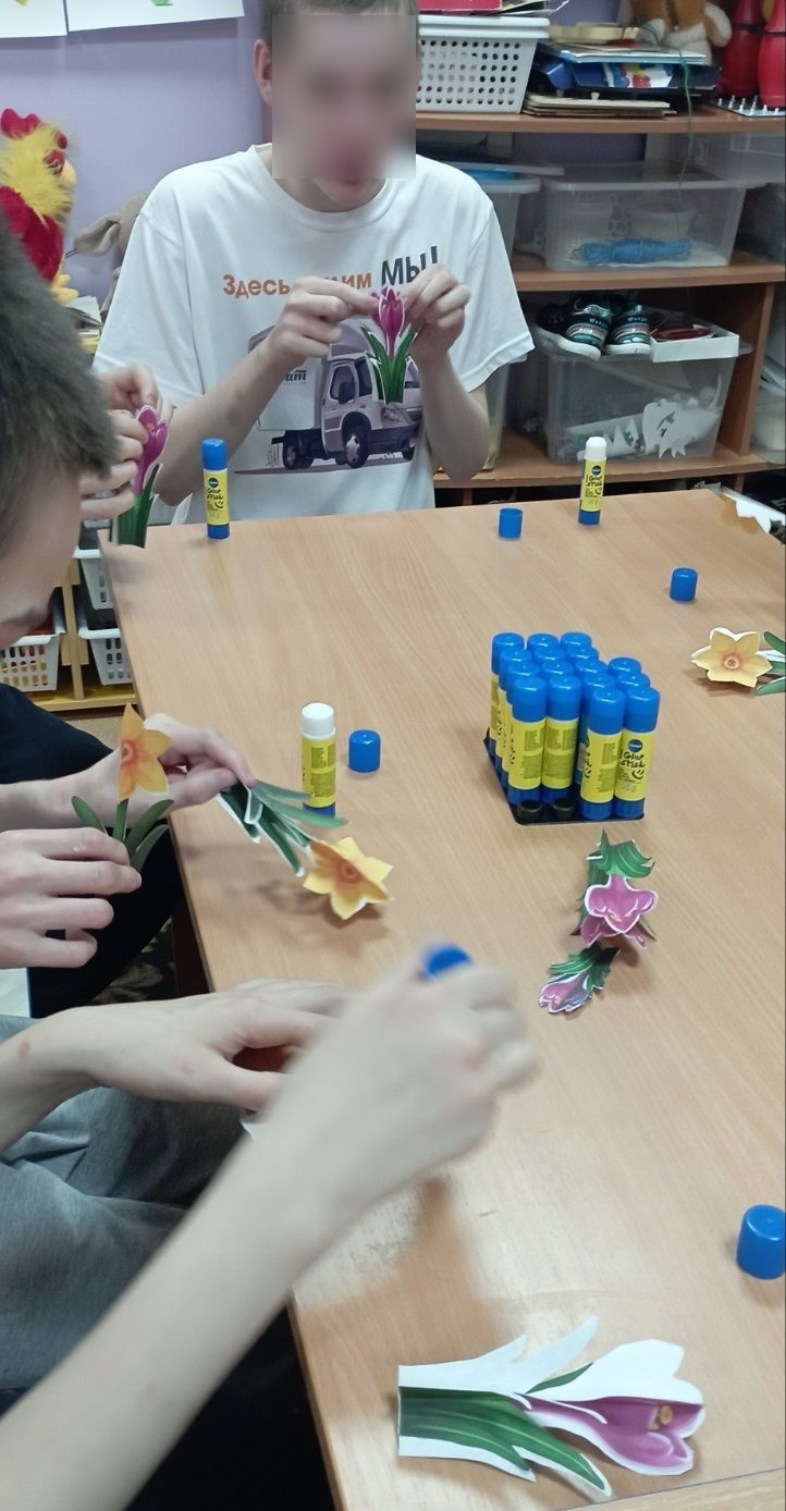 В преддверии светлого, доброго и нежного праздника 8 Марта, наши мальчики изготовили в подарок девочкам необычные подарки – объемные цветы. Их ребята сконструировали из красочных шаблонов.