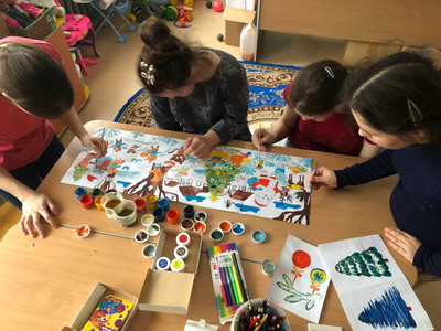 В первый день Нового года наши ребята приняли участие в работе творческой студии «Во что покрасить Новый год?».