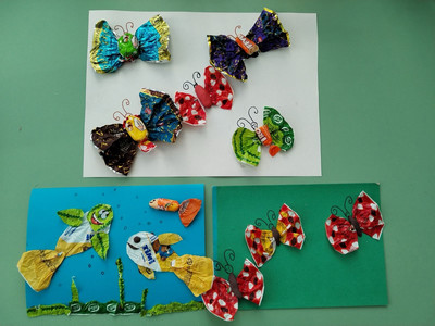 В группах прошли беседы о пользе и вреде конфет, о процессе приготовления, о профессии кондитера. Ребята сделали поделки из конфет и фантиков. В общем, день прошел вкусно, весело и интересно!