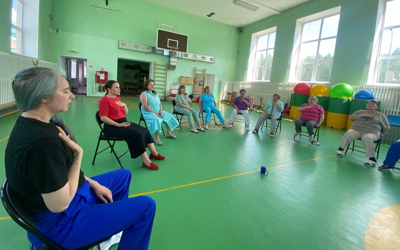Команда «Комитета "ОПОРА-СОЗИДАНИЕ" под руководством Валентины Крепышевой в очередной раз посетила наш Центр, чтобы провести практику для сотрудниц по управлению эмоциями в рамках проекта «Зарядка для профессионалов». Участниками встречи стали специалисты учреждения, работающие с детьми с тяжелыми множественными нарушениями развития (ТМНР).